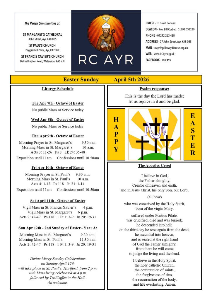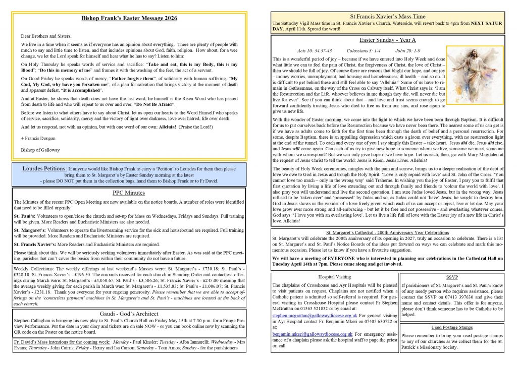 Newsletter for Easter Sunday, April 5th 2026, Happy Easter!