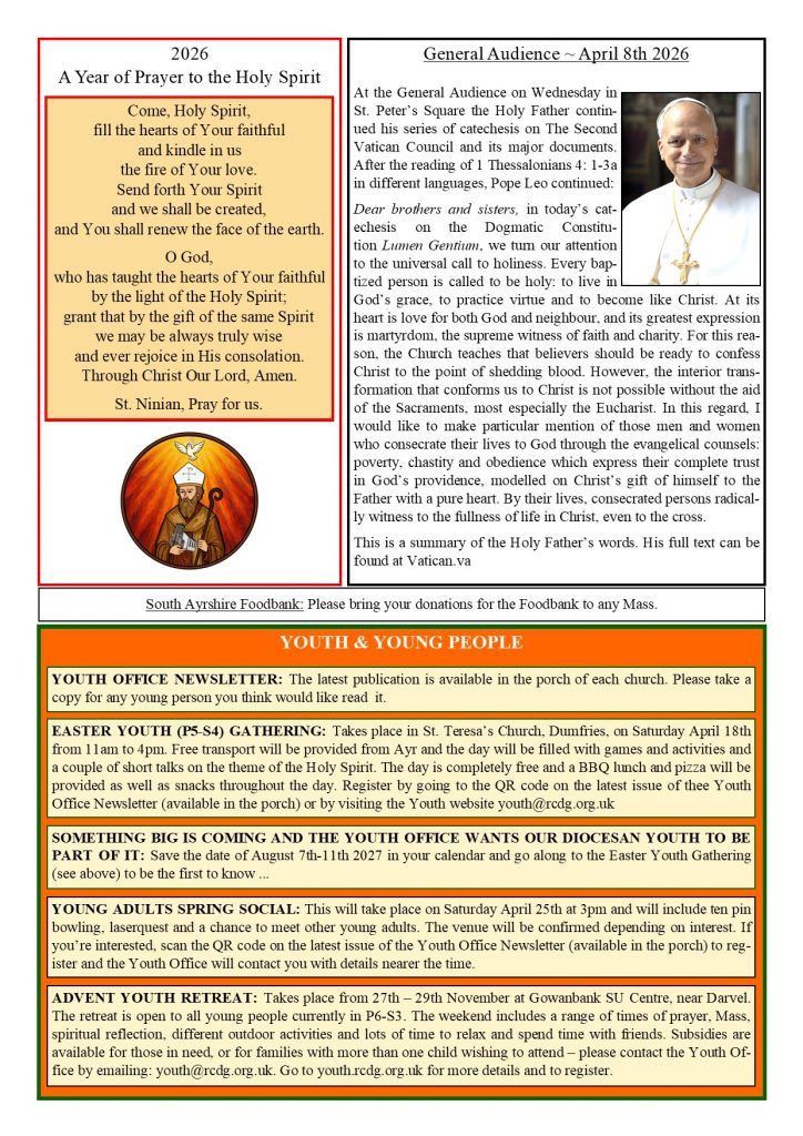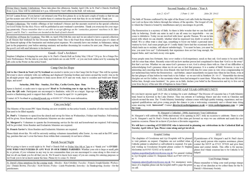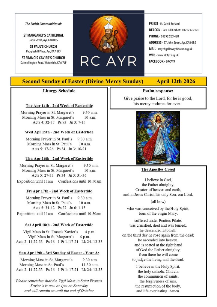 Newsletter for the 2nd Sunday of Easter in Year A, (Divine Mercy), 12th April 2026